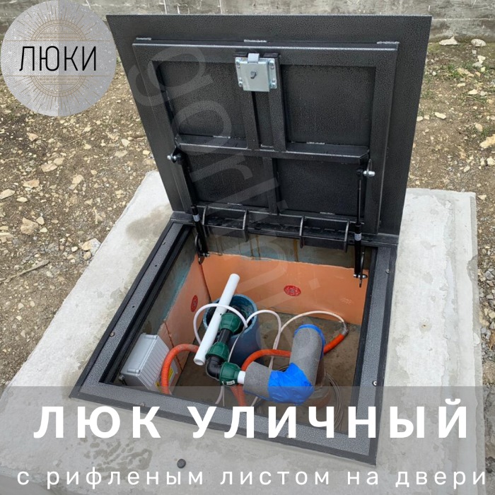 Верхняя сторона рифленой крышки используется "как есть" без дополнительной отделки. Закрыват спуск в подполье в гаражах и на паркингах, на складах и производствах - везде, где требуется устойчивость к повышенным нагрузкам. Подлежит установке внутри помещения или на улице под навесом без прямого попадания осадков.