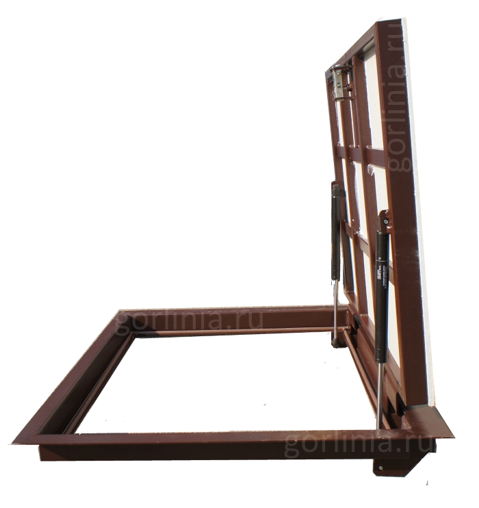 Заказная конструкция с подъемным механизмом по стороне 600 и удобным световым окном 550*800 для спуска по лестнице в погреб.